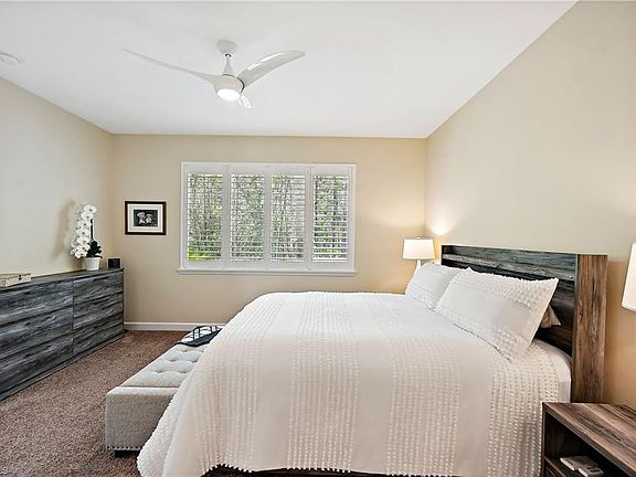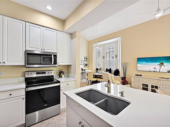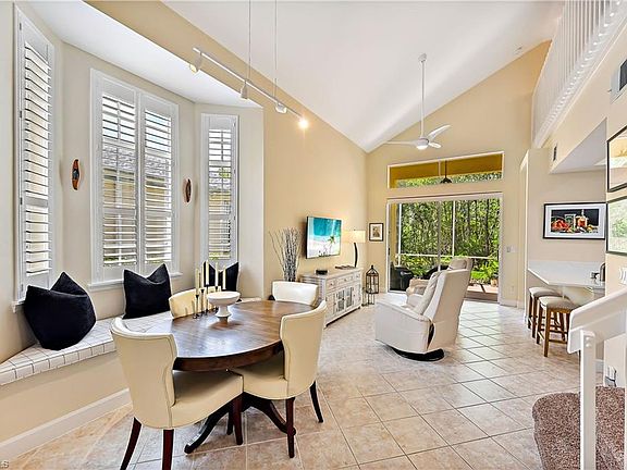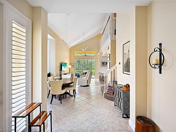 Beautifully updated three bedroom plus loft/media room three full bath villa with private wooded preserve views. New roof in February 2023, new plantation shutters, beautiful quartz counter tops in kitchen and baths, new AC in 2022, newer appliances, paint, carpet and paver walk way and driveway. New rolling shelves in pantry and lower kitchen cupboards, custom master closet, updated led lighting through out. This home is perfect, move in ready and is being sold turnkey furnished. Included with your purchase are fantastic resort style amenities including a Jr. Olympic pool, hot tub, cabana bar where you can enjoy lunch and cold beverages or a happy hour, fitness center, bocci, pickle ball and a restaurant that offers Friday evening dinners and special events. There is also an optional tennis membership that offers 12 beautiful clay tennis courts, lighted for night play. USTA teaching pro is onsite, lots of clinics and team matches. What a great Naples location only minutes drive away from 4 beaches and every other amenity imaginable.