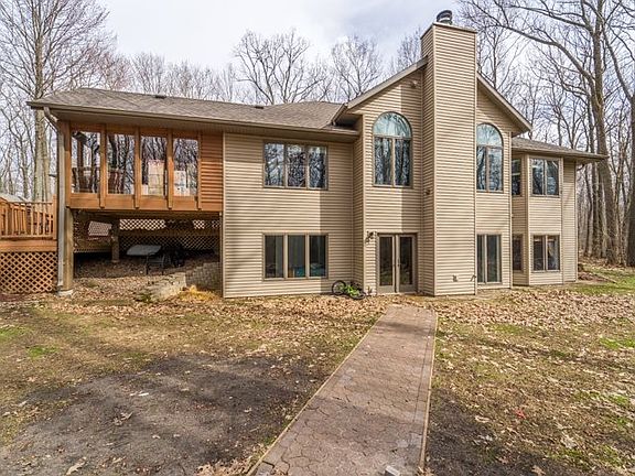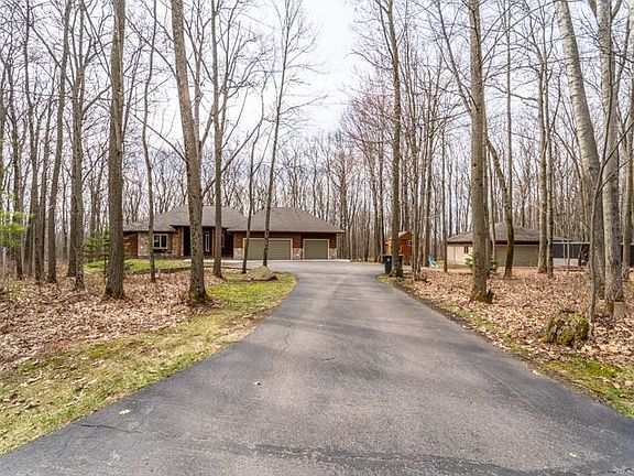 Custom built Ranch in Rib Mtn Area with huge 2.29 Acre lot and tons of privacy. Stone accents on the exterior of home compliment the wooded surroundings and peaceful setting. Through the front door you'll find a nice tiled entry area which flows directly into the vaulted ceiling family room and open concept kitchen. New granite tops in the kitchen compliment the refinished oak cabinets and bring about a comfortable atmosphere. Huge deck off of the kitchen with attached sun-room bring in the beautiful wooded views and create a fantastic atmosphere for entertaining or simply relaxing on those summer nights. Finished lower level with walk-out provides amble space for kids or adults alike to entertain. Heated and cooled bonus 2 -car workshop/garage beautifully built to match the exterior of the house. New Roof, water softener and water heater, 2015.