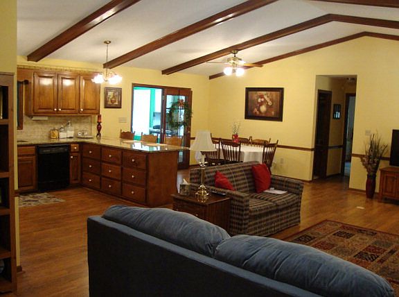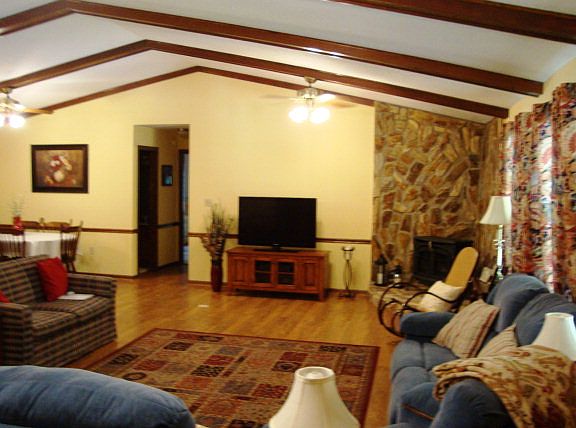SO FINE OF A RANCH STYLE HOME SITUATED ON THE HILL TOP. 52' X 8' FRONT PORCH WITH PICKETS. HOME IS NEAT AS YOU WILL EVER FIND. GREAT ROOM HAS BEEN ENJOYED BY THIS FAMILY SINCE 1989. CATHEDRAL CEILING WITH STAINED EXPOSED BEAMS, ALL TRIM, CROWN MOLDING ARE ALL STAINED. LAMINATE FLOORS. TWIN PASS THROUGH METAL DOUBLE CARPORTS WITH 14' CREST. PAVED DRIVEWAY FRONT TO REAR. SUCH A WELL MAINTAINED PROPERTY. CYPRESS WOOD SIDING, NATURAL GAS AND CITY WATER ARE BONUSES. GRANITE COUNTER TOPS, TANKLESS WATER HEATING