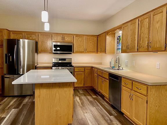 Spacious townhouse with new LVP flooring in foyer, kitchen, living room, dining area and 1 upper bedroom. New lighting, new top of the line stainless kitchen appliances, new front load washer and dryer. Spotless home that you can move right into and enjoy cooking in the spacious kitchen with huge center island with new quartz top. 2 main level bedrooms, primary has walk in closet, 2nd main level bed has french doors. Main level bath has new tile walking shower with glass doors, new faucet and counter top. Lower has a amazing family room, 2 bedrooms, a full bath with a garden soaking tub, a flex area that could be a small kitchette or a workshop/craft area. At the end of the stairs in lower level the previous seller made a super cool pocket door.