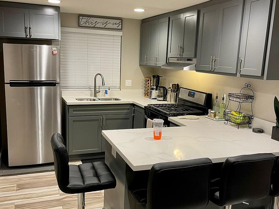 Welcome Home Brand new 2 bedroom 1 bath unit with beautiful wood ceramic tile flooring, Contemporary kitchen with new cabinets and quartz countertops. Unit has its own private exterior area and shed for extra storage. Refrigerator and stove are included as well as an AC unit. Washer and dryer available inside as well. Easy freeway access. No pets allowed. Tenants to pay for all utilities except natural gas, Electric rate will be lower due to solar panels on property. No pets and no smoking, Plenty of street parking available.