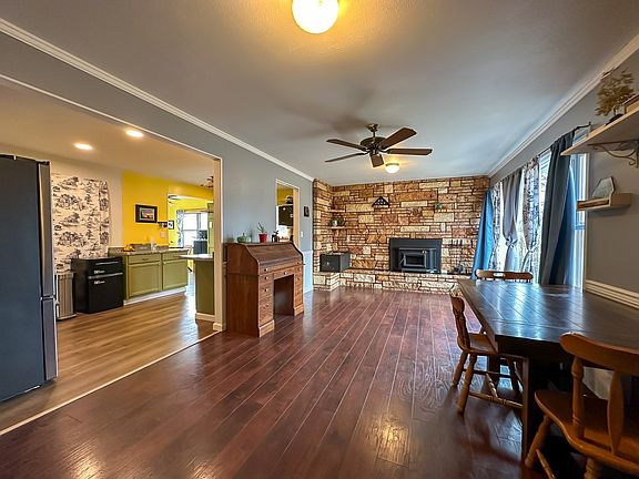 The spacious kitchen boasts a cozy breakfast nook, perfect for enjoying your morning coffee. The large living room is highlighted by a charming fireplace and a picturesque window, filling the space with natural light.