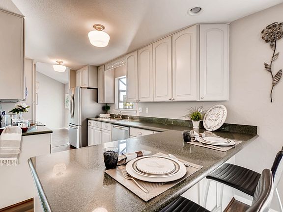 Beautifully updated two-story home at the end of a long cul-de-sac in Lafayette w/mountain views. Tucked back off the beaten path, this home has it all. 1/3 acre lot, great backyard, greenhouse and new, heated shed. Enjoy the brand new flooring throughout this home. Dark floors accented by warm gray walls, a large brick wood fireplace and new lighting. Stunning main floor bath updated with shiplap walls and a gray vanity. Adorable! Kitchen has gray cabinets, Silestone quartz counters, new stainless steel appliances. Upstairs hosts two bedrooms, a full bath and the master has dual closets, hardwood floors & 3/4 en-suite bath. Basement has been fully finished with new carpet, laundry facilities, a bedroom, full bath and two additional spaces for kids hangouts, workout room, or large office. Newer windows, newer roof, new fence, heated garage, 3-car driveway parking and RV parking. Completely redone and turn key ready! Hurry, this home is sure to WOW you!!!!