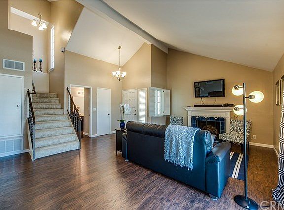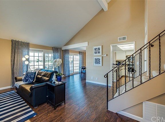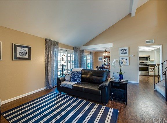 Enjoy a ringside view of Saddleback Mountain from the patio of this fabulous 3 bedroom, 2 bathroom La Cuesta Racquet Club townhouse. This is one of the most popular floor plans with a downstairs master bedroom and full bathroom and central air conditioning. The block is one of only nine in the complex with only two units and it backs onto a particularly private green belt area with sweeping mountain views. Upgrades carried out in early 2017 include installing wood laminate flooring downstairs, neutral carpet on the the stairs and upper level, corian kitchen counters, stainless dishwasher and microwave, electric stove, interior paint and powder coating the stair railings. The unit has a fireplace in the living room. The ceilings have been scraped and the appliances include a trash compactor. There are double pane vinyl windows and sliding doors opening onto a spacious, fenced back yard. The master bedroom will accommodate a king size bed and adjacent bath has a deep spa style soaking tub with jets. Both upstairs bedrooms are good size and the upstairs bathroom contains both a tub and shower. There is an attached two car garage with direct access to the house. Each unit has one permit for additional authorized street parking. The garage contains the washer dryer hookup and extra cedar lined cabinets for storage and clothes. This quiet, secluded complex has numerous green belts, a clubhouse and a tennis court. It is well managed and maintained and the HOA fees are low.