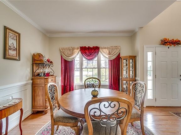 Beautiful Transitional home with 4 bedrooms, 2.5 baths situated on cul de sac lot! Enter from the oversized front porch into the two story foyer full of natural light. Off to one side is a huge formal dining room with hardwood floors, crown molding, chair railing and on the other side is a versatile living room providing endless options. The family room is right off the kitchen, and boasts a gas fireplace and view of the beautiful tree lined backyard. The kitchen is a stunner featuring an island, granite countertops, pantry, adorable eat-in area with bay window and access to the deck! The primary bedroom upstairs has a huge walk-in closet, en suite bathroom with jetted tub and dual vanities. Three additional oversized bedrooms and a full bathroom round out this spacious 2nd floor for tons of living space. Additional features include a walk up attic, new upstairs HVAC unit, new dishwasher, private lot in cul de sac - All in a great neighborhood convenient to 288 & Powhite Pkwy in Award-Winning Chesterfield County School District.