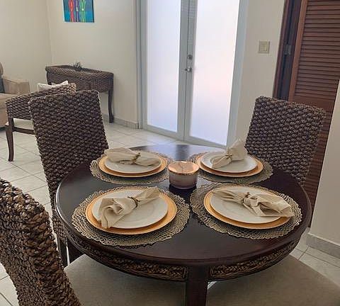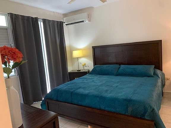 First floor villa with beautiful view of golf course and lake. A few steps from the pools, basketball court and children's playground. Club House Restaurant delivers to apartment. 24 hour security. Brand new washer and dryer. King size bed. Smart tv. Air conditioner in living room and bedroom. Private backyard. Water tank and water heater. Rent includes water bill and HOA. You will be responsible for electricity and cable bill. Parking is right in front of unit.