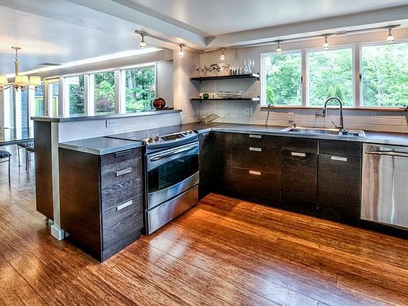 Here is your chance to own this completely updated Mid-Century Modern home that is situated on 1.8 serene acres! This unique home features 4 bedrooms, 2 full and 2 half baths all which have been tastefully updated to match the homes contemporary style. Floor to ceiling windows flank the back of the home showcasing its beautiful private yard and in-ground pool. This fantastic home has had a recent addition which gives an option for separate living space for an in-law, teen or adult family member. This addition has a separate entrance, office and master suite upstairs and a living area, kitchenette and powder room on the main level. Walk thru an adjoining door to the original part of the house and you will enter the open concept living room, dining room and kitchen which is also updated and features new appliances. This home must been seen to truly appreciate its unique architecture and style!