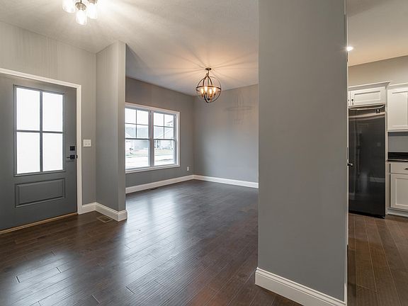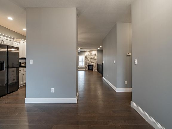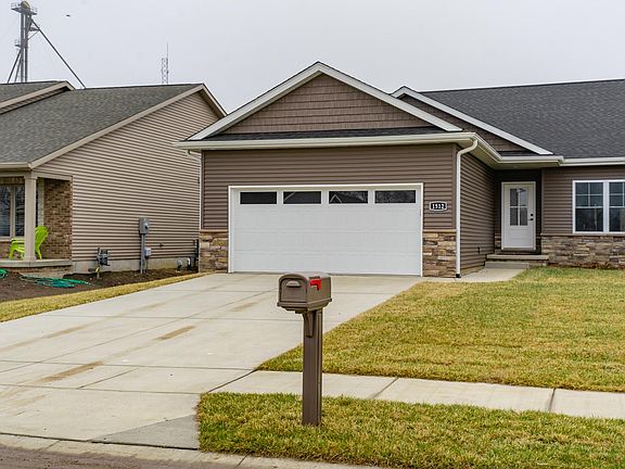 Awesome location. Large lot that backs up to walking / bike trail. Total square footage 2,394; main floor 1,657 sf, basement 737 sf finished. Kitchen comes with granite counter tops, soft close drawers and doors, black stainless steel appliances, full sized pantry. Two bedrooms and two full bathrooms, living room, dining room, laundry room on main level. Master bedroom has two walk-in closets. One in bedroom, other in the bathroom. Master bathroom has 6' double bowl vanity with attached linen cabinet, large 5' walk-in shower with sliding shower doors. 9' walls throughout entire main level of the condo. Hardwood flooring in living room, dining room, and kitchen. Living room has amazing stone fireplace that leads to 14'x10' covered back porch. Basement comes with large bedroom, Jack and Jill bathroom, family room, plenty of storage in unfinished area. Large 483 sf two-car garage. Outside is maintenance free with stone and vinyl siding. Landscaping includes mulched flower bed, sod in front and side yard, seeded back yard, buried downspout outlets.