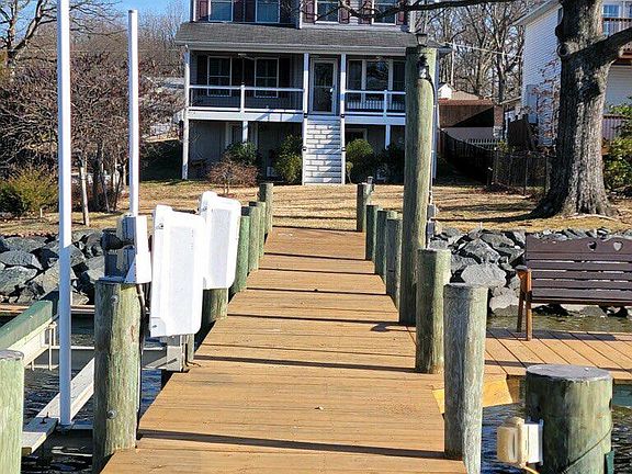 WATERFRONT ! Your Dream Home Has Arrived -Pressure Treated Lumber Pier -2 Boat Lifts, Multiple Boat Slips plus the Ice Eater is included. Enjoy the Beautiful Waterfront Views in your Custom Colonial Built in 2012. Offering 4 Bedrooms 3 Full Baths- No Steps to enter into this lovely home- Trex Decking on the Ramp with a Covered Porch Entrance- Spacious Formal Dining Room with beautiful hardwood flooring- Oak Kitchen and all of the Appliances are Included- Formal Living Room leads to the Covered Waterfront Porch- Bedroom 1 is on the Main Level- Full Bath 1 is on the Main Level and is Handicap Accessible-Laundry Room is off of the Main Level Foyer- Upper Level offers 3 Bedrooms- Primary Bedroom Overlooks the Water and Offers a Full Primary Bath with Jet Tub and Separate Shower- Large Walk in Closet- Full 3rd Bathroom is on the upper level as well. Full Basement - Offering Lots of Storage - Pellet Stove is included-and the Basement Entrance has a Covered Patio facing the Water. 2 Car Detached Garage - Compressor in the Attic of the Garage is Included. Offering Off Street Parking- Enjoy the Lazy days of Summer in your new Waterfront Home! Waterfront footage is 50ft +- You can Launch your Boat from the Public Boat Ramp that is located on the Right Side of the Property.