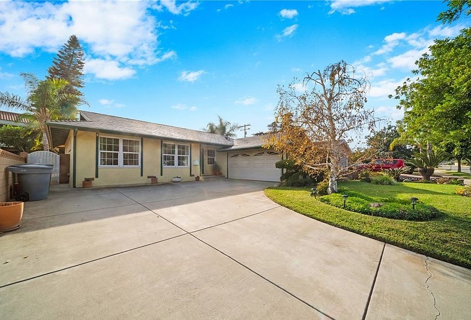 This lovely single-story home, which is tucked away in a very sought-after community, provides the ideal balance of convenience and comfort. With three roomy bedrooms and two bathrooms, the well-planned layout includes an entryway leading to a formal living room with a warm fireplace. There is also a large family room that blends in perfectly with the living area. With granite countertops, new interior paint, lots of storage, and a family dining space, the renovated kitchen is a great feature. The bedrooms have handy built-in cabinets and lots of natural light. The main suite has a modern en suite bathroom with a spacious shower. Step outside into a gorgeously planted backyard that is perfect for entertaining or spending quiet evenings. It features a custom designed concrete patio, an upgraded patio cover with new paint, and a ceiling fan. Additionally, there is a patio canopy that is perfect for gathering and dining outside. A connected two-car garage with a laundry room and lots of storage is another plus. Ideally situated nearby restaurants, shopping, the park, and highly regarded schools. This house is ideal for families or anybody seeking a calm yet active lifestyle given that it is conveniently located near major freeways. The tenant has the option of a one-year or two-year lease. The monthly fee includes grass care, water, and garbage collection. Long-term lease renewals are an option and pets need to be registered.