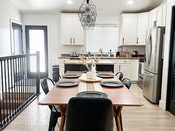 This is a remodeled, 5 Bedroom 3 Full Bathroom House with finished basement as of 2023. The basement has a kitchenette with necessary appliances. There is not a separate entrance, but stairs are right next to the garage/backdoor entry. Great location for City Center Eagle Mountain! This is within walking distance to the nearest gas stations, grocery store, and restaurants. This is a row end home so only one side and backyard neighbors. We are conveniently located just down the street of a Storage Unit, Facebook, and semi-closely located to Tyson Foods. Showings are by appointment only. Home includes: *Outlet supply in garage for electric cars or work shop *Two kitchens with appliances and dining table and chairs included *Laundry Room upstairs with second laundry hook-ups downstairs *Spacious backyard with fire pit and a dog run (currently no pets allowed, but is negotiable) *Security system for the house and garage as well as a doorbell camera *Two car garage with RV Pad *Master bedroom with walk-in closet *Cement pad for BBQ *Finished basement as of 2023 Requirements: - Minimum 650 credit score (exceptions may be granted for additional deposit or higher rent) - Background check with no evictions, bankruptcy, or foreclosures - Deposit of $2000 ($500 non-refundable) - As a household, 2x income - All adults over 18 must be on the lease, including dependents. All adults over 18 must submit an application and complete a background check to be approved to be on the lease whether they contribute income or not. There are no individual leases to rent by the room. - Renter's Insurance will be required. -Tenants will be responsible for lawn maintenance. - There will NOT be access to the shed on the RV Pad or Cold Storage. This will be clearly stated in the lease. * Security Deposit of $2000 (including $500 non-refundable fee). Tenants are also subject to replacing linens and bedding if provided as a deduction from their deposit or an additional fee should it exceed their deposit. *Lease length from month-to-month. 30 day notice until the last day of the month to vacate will be required. *Utilities paid by tenants, city utilities are required to be in landlord's name. *All adults 18+ must be on the lease, even if a dependent. All adult 18+ that are not direct dependents of the primary signer are required to apply. *First month's rent and deposit due at signing. *NO smoking of ANY kind, or illegal substances allowed near or on the property. *Late payment fee will be charged per day per state regulation after the 5th of every month. First late payment will receive a warning notice. Second late payment will be subject to an eviction notice. *Tenants to maintain furniture and landscaping. Any damage to the property or furniture will result in loss of security deposit and may be subject to further charges. If you wish to bring furniture in addition to what we provide, that is accepted. Removal of our furniture is not permitted. *Pets are permitted IF approved by landlord.
