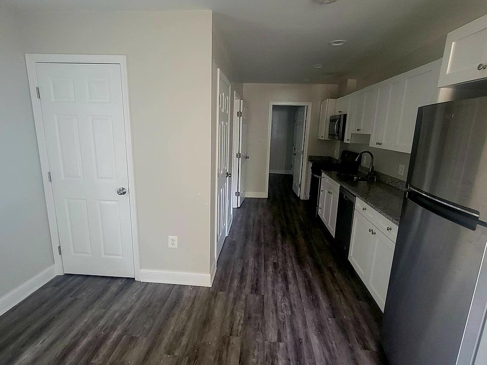 Beautifully renovated 1 bedroom 1 bath ground level unit. Large closet in master bedroom. Unit has snow white kitchen cabinets, granite countertops, and stainless steel appliances. Full size front load stack washer and dryer in unit. Heating and cooling is with controllable electric mini-splits for dual zone comfort. Unit has the entire backyard for grilling/entertaining and just admiring the rose bushes in the back. On street parking. Tenant responsible for gas and electric. Water is an additional $40/m.