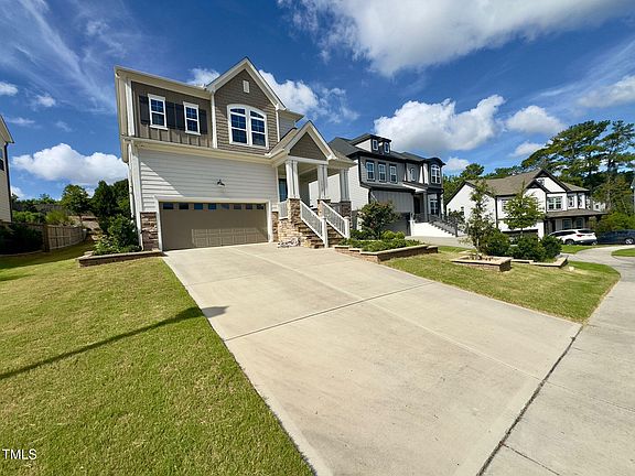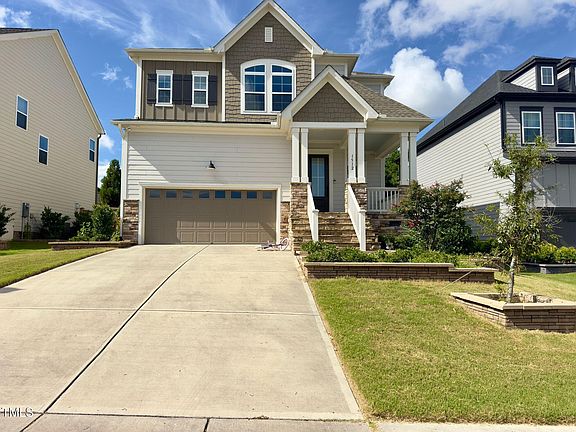 Farmhouse-Style 5-Bedroom Home Available for Rent on/after Sept 10! This spacious 5-bedroom, 3-bath single-family home blends inviting farmhouse charm with modern comfort. The first floor boasts rich hardwood flooring throughout, a bright family room, breakfast nook, and a flexible living area that can also serve as a formal dining space. A guest bedroom with cozy carpeting and a full bath completes the main level. Upstairs, the primary suite offers a private retreat, while three additional bedrooms with shared bathroom and a versatile loft provide plenty of space for family, work, or play. A well-appointed laundry room with a washer/dryer set on pedestals and utility sink adds convenience. Outdoor living includes a welcoming front patio and an expansive extended deck with a grill and outdoor seating- perfect for entertaining or relaxing evenings. A two-car garage offers ample parking and storage space. Located just minutes from Research Triangle Park, RDU Airport, major highways, shopping, and top-rated schools, this home combines style, comfort, and unbeatable convenience!