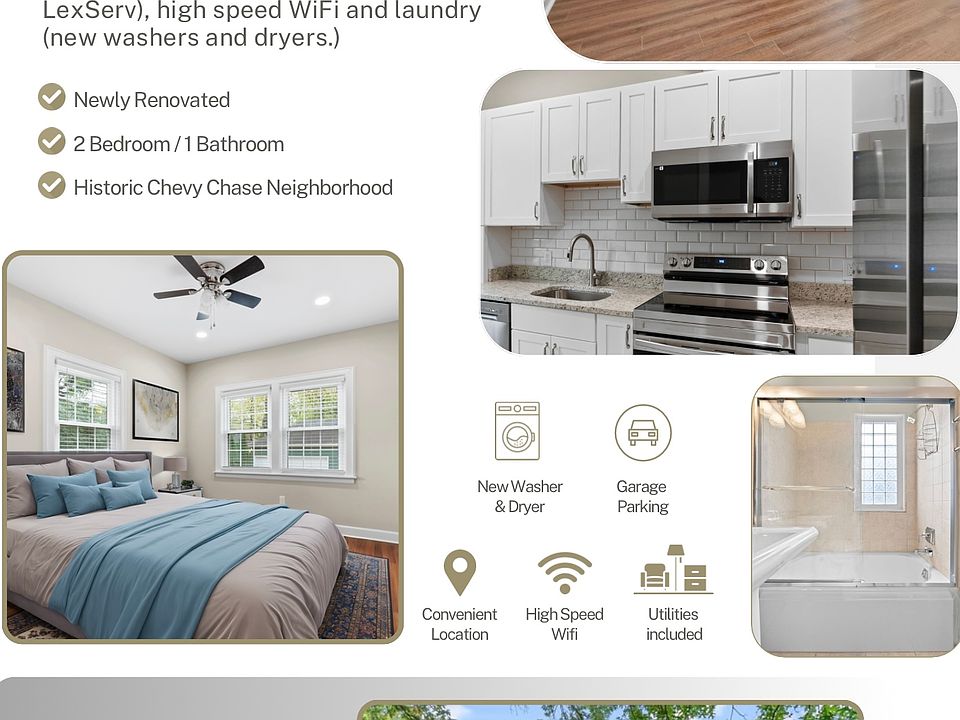 Chevy Chase Apartment available for rent. Newly remodeled, monthly rent includes all utilities, high-speed WiFi, garage parking, and laundry. All utilities included in monthly rent.