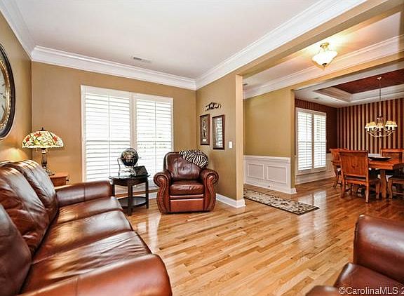 Great floor plan with finished basement on huge wooded lot! Updated Kitchen, hardwoods throughout main, formals, 2-tiered deck with wooded views. Media room, billiard/rec room, kitchenette in basement, laundry on 2 levels. 3 or 4 BR up + office on main & extra room in basement used as bedrooms. Backyard play space beyond trees. Excellent storage, hot tub. Close proximity to Union Academy K-12 Charter School. Shopping and restaurants across from neighborhood! Weddington Optimist Park nearby.