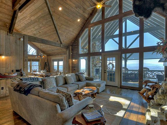Cause baby there aint no mountain high enough to keep me from gettin to Grandeur! Soaring above the clouds & overlooking mesmerizing long range mtn views, this custom stunner brings new meaning to high expectations. Tucked away behind the gates of The Falls Over Lake BR in the heart of the Aska Adventure Area just 5 mi to Blue Ridge, this dreamy retreat offers easy all paved access to all you can imagine in N GA. Youll enjoy being the host w/ the most from your new mtn top masterpiece w/ 3 levels of space for you & your guests; multiple amazing living areas to enjoy the great outdoors from within, as they offer soaring ceilings w/ plentiful glass bringing the views inside; gourmet kitchen; outdoor decking to soak up all the mtn life has to offer complete w/ fireplace & more; detached 4 level garage w/ living quarters for additional guests, workout area, storage galore; the list goes on & on. This gem showcases the perfect blend of finishes both inside & out, & the furnishings & decor are also available for your consideration. Your dream home awaits