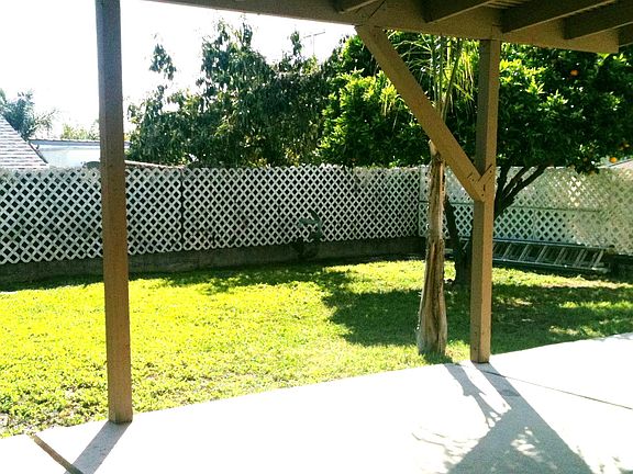 Secluded 1 bedroom BACK house in a quiet premium neighborhood. North of Malvern near Sunny Hills High School. Kitchen has oak cabinets, granite slab counters, new stainless steel gas range and new microwave. Wood laminate floors and ceramic tile floors in bathroom and kitchen/dinning room. Recessed lightings and ceiling fans. Washer & dryer in laundry room. HVAC and a WALL AC unit in kitchen. Patio door and windows are vinyl thermopane double glazing. Huge covered patio for entertaining and outdoor living. Tranquil back yard has a orange tree and palm trees and a storage shed. Partial furnished, move in ready with your own bed. Utilities split with front unit 50-50, no gardener services. 12 months lease