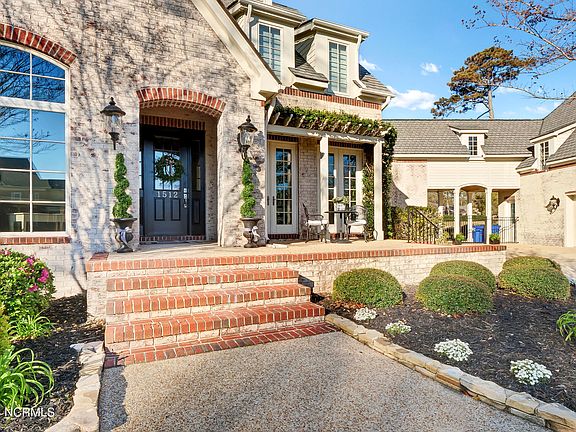 1512 Landalee Dr. is a star amongst stars within a picturesque gated golf course community near Wrightsville Beach; welcome home to the Country Club of Landfall. This French country style home has a timeless appeal which invites you into a light filled flowing floor plan. Downstairs offers formal dining and music rooms upon entry, leading to the family living room with stacked stone gas fireplace and renovated kitchen/breakfast, along with a generous primary suite. All of these rooms have access to the outdoor living terrace with sweeping golf course and lake views. Upstairs there are 4 additional bedrooms and 3 full baths (2 en suites.) Be sure to impress your guests or enjoy the sunset and coastal breezes from the new 5th bedroom/flex deck providing views of Pete Dye course holes 1,2,3,4 and the driving range in the distance! The home site is over ½ acre, fenced back yard, cul-de-sac street, natural gas connected, surround sound, all hardwood and tile floors, 3 car garage with workshop (huge walk in attic space above that is pre-plumbed and wired if more square footage is desired or for a nanny or private in law suite) updated interior paint, lighting, fans, the list goes on! Come see for yourself; you will fall in love!