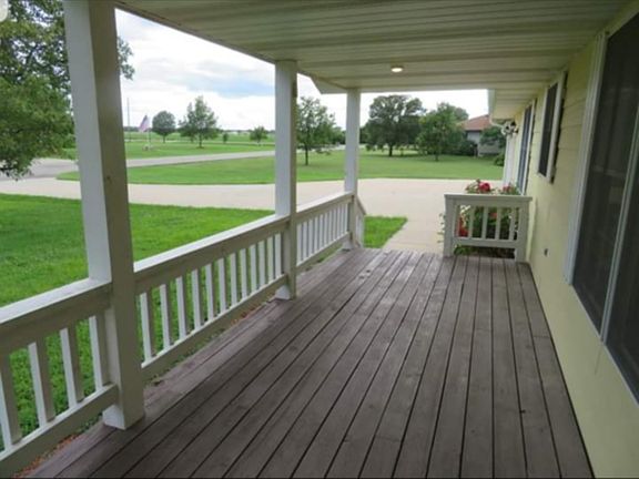 Lovely 3 bedroom, 2 bath home located on three city lots on a quiet block in the SW corner of Burlington. Oversized 3 car garage with built-in storage. Brand new roof and 3 garage door openers, large covered front porch. Large closets in all bedrooms, plentiful storage throughout. Wood floors and freshly cleaned, like-new carpeting. Storm shelter/crawl space under home. Air conditioning, ceiling fans, beautiful oak kitchen cabinets, all kitchen appliances included. Interior laundry w/built-in ironing board. Large utility closet. This home is vacant and move-in ready!