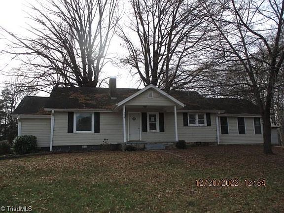 REDUCED! Stately, one level living Ranch near Yadkinville w almost one and half acres. Three Bedrooms and three and half Bathrooms, well & septic, walk-in attic, cellar, detached garage w circle drive, mature trees and nice lot. Very large living room, cozy den w fireplace, open kitchen w bar, only dishwasher remains. Carpet needs to be removed and some repairs needed. SOLD in AS-IS condition for CASH. See Buyer's Agent offer instructions in Agent Only.