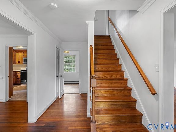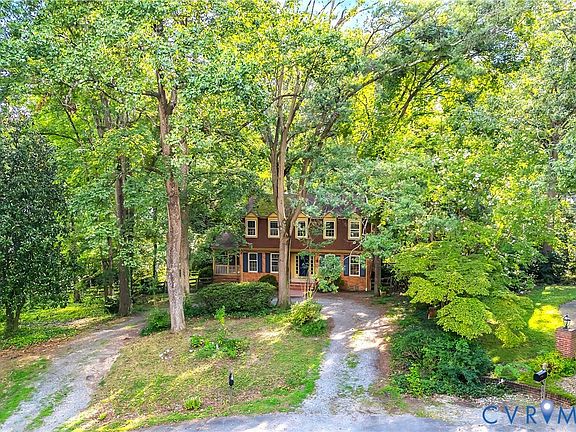 Assessed at $436,200!!! Classic Brick Williamsburg Colonial on a private & wooded half Acre Cul de Sac Lot in the Godwin School District. Welcoming Foyer with Wood Floors; 24' Family Room with Brick Fireplace; formal Dining Room & Eat-in Kitchen flow on to the Screen Porch; 25' Primary Bedroom Suite with 2 Walk-in Closets; 25' x 13" Basement Rec Room with Fireplace, Built-in Bookcases, and Tile Floor; 23' Unfinished Basement Workshop opens out to the rear Yard; Wood Floors throughout! 2020 Heatpump! This is the ideal home to add your own touches & updates!