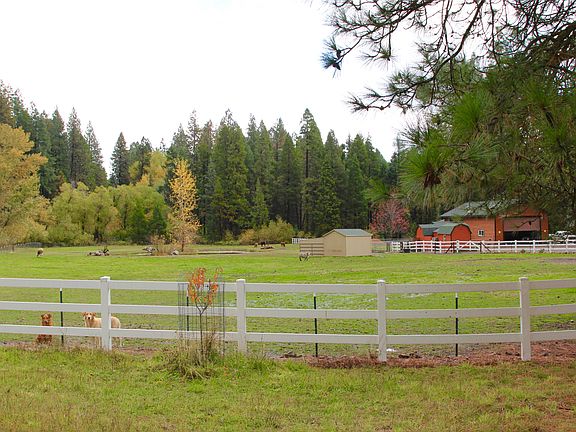 Over 3.5 acres with year round Wagon Creek frontage. The cabin style home has extensive wood walls, ceilings & is very well appointed with tile counter tops, wood, carpet & tile floors. It has a huge attached garage/barn. Fully fenced with white paddock fencing. Views of Mt Shasta.