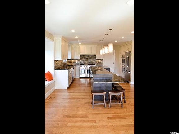 You have to see this home!! Located on Hole #1 of Oakridge Country Club in Farmington* Jaw dropping views of the course and the mountains* Park-like backyard with a slide off the deck* Huge trees* Storage shed* Covered patio* Gourmet kitchen with Wolf stove* Viking appliances* Custom cabinets w/ Granite counters* Huge open family and dining room* 3 exits onto the trex deck that spans the whole backside of the house* Walk-in closet* Huge bedrooms* Big downstairs family room* Plenty of storage in the 2nd basement* Could be finished into more usable square footage* Easy to show!!!