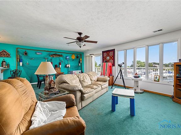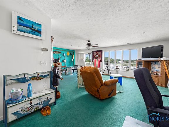Waterfront, 30FT DEEDED DOCK, Lake views, community pool, private balcony - 2bed, 2bath end unit condo located on Catawba Island. Immediate access to the lake from your dock and condo. Open concept living space - living rm is very spacious w/ windows overlooking the marina. Patio door from the dining rm makes a great place to enjoy w/ family & friends. Galley style kitchen w/ ample counter/cabinet space, bar seating. Stackable washer & dryer. Full bath & two spacious bedrms off hall. Primary bedrm w/ ensuite full bath. Great location close to vacationland favorites! NO short-term rentals.