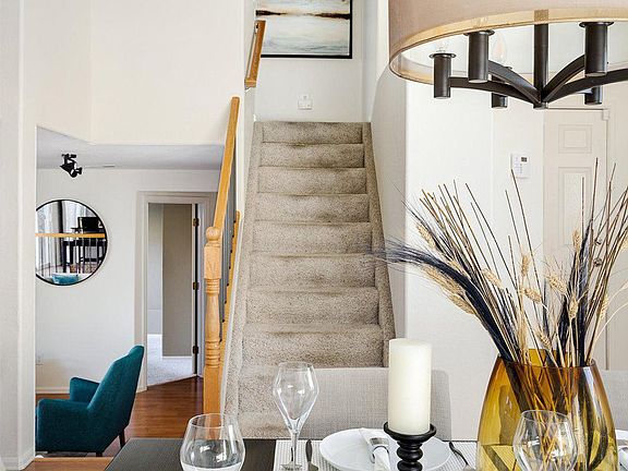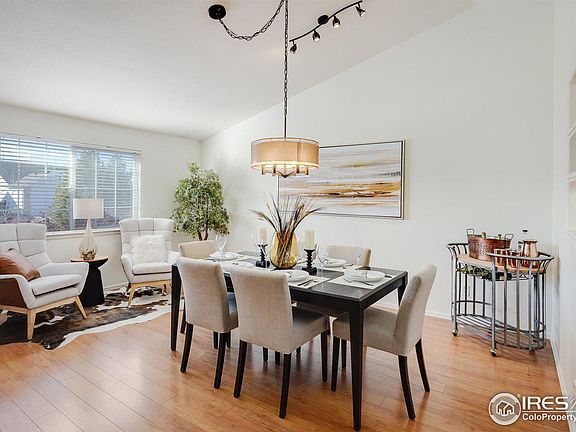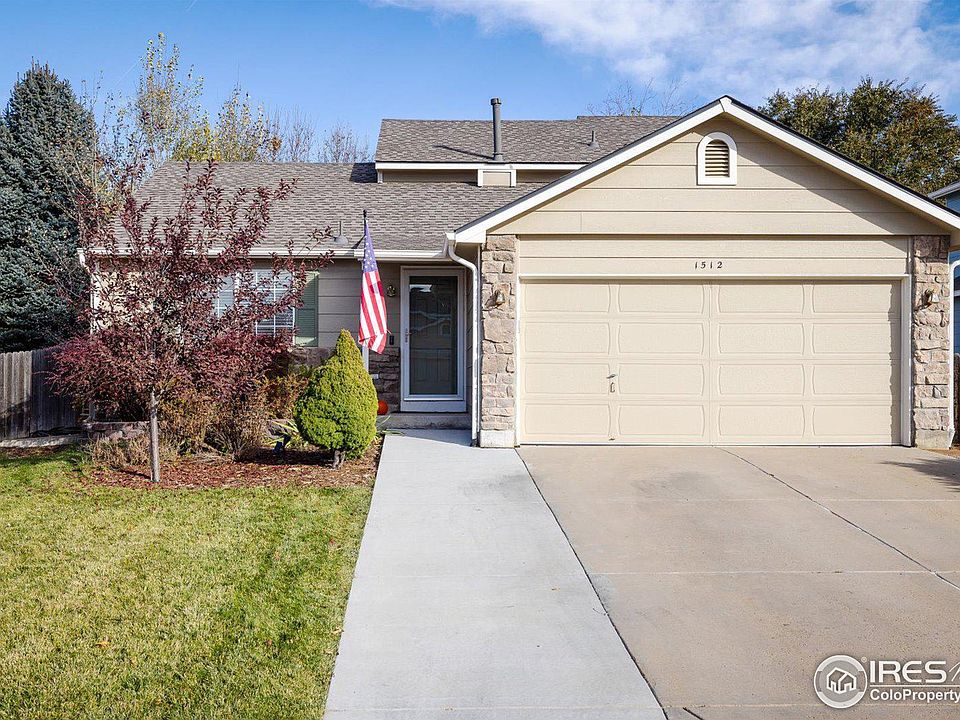 Situated in southeast Longmont, this Fox Creek Farm home glows with inviting allure. 2023: Roof replaced. 2021: Replaced water heater, new kitchen stainless steel appliances, new granite counter top, Sprinkler lines and drip system added. 2019: Bathroom remodel and added upstairs closet on landing. 2017: Replaced Furnace, Basement remodel adding a full bath, bedroom, linen closet and laundry/Utility room. The interior lighting has been updated. The flowing layout of this home includes wood floors, vaulted ceilings, contemporary lighting, contemporary stair rail and modern paint colors. The eat-in kitchen is accented w/ stainless steel appliances, granite countertops, tiled backsplash and added cabinets. The movable kitchen Island with seating will remain with the property. Open a sliding glass door to reveal access to a patio w/ a pergola, newer landscaping and fencing. A tiled fireplace in the living area helps one to enjoy cozy evenings at home. Four bedrooms are complemented by three updated baths. Residents enjoy close proximity to I-25, nature trails, Union Reservoir, downtown Longmont and Costco. Seller to credit $4,000 carpet allowance/concession to buyer at closing.