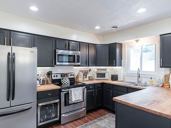 Are you somebody who's tastes exceeds their budget? Somebody who wants it all and won't compromise? Well, I've got just the house for you. It blends two seemingly opposites together: Price and pizzaz. I know you have already seen the pictures so I will answer the biggest question on your mind.....YES, IT LOOKS THIS NICE IN PERSON! The Great Room with a new electric fireplace has a tall vaulted ceiling and is open to the dining area and that amazing kitchen. The Kitchen has newer cabinets, snazzy hardware, stainless appliances, tiled backspash and butcherblock countertops. Your favorite spot inside the house will be at the breakfast bar area in the kitchen. Outside, your favorite spot is sure to be the large patio. The answer to your next question is, YES, the canopy stays with the house. When you are in the yard, be sure to look around so you fully realize how private it is.....C'mon out and see it!