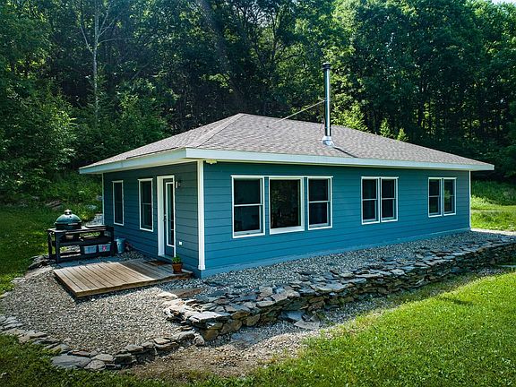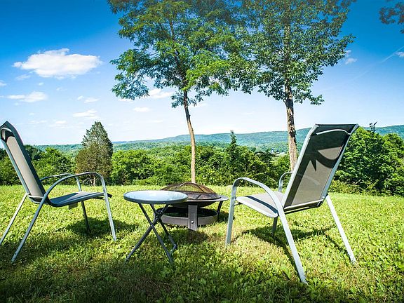 A long private driveway winds and climbs past ancient limestone boulders and mature trees. At the summit lies a clearing in the woods, a world of its own nestled in the treetops, shrouded in the ultimate privacy with far-reaching valley and mountain views. The home is perfect for those seeking a minimalist lifestyle integrating technology with functional open space. Inside the renovated one-level modern ranch, you will find polished concrete radiant heat flooring, windows that bathe the rooms with light and spectacular views, a Morso wood burning stove on display, a piece of art standing on a pedestal between the open living, dining and kitchen area, two bedrooms and a stunningly appointed full bath. Retreat to the outdoors with several level, cleared areas to enjoy the natural surroundings. With furnishings also available, you can be enjoying this idyllic respite and all that the surrounding villages in the Harlem Valley have to offer this summer. Be sure to click on the Virtual Tour to view the panoramic view from this home. Use your mouse for a full 360 degree tour of the property.