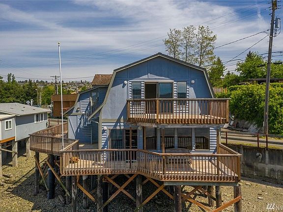 Amazing home at Titlow Beach. This one of a kind waterfront home is actually built on pillers over the water. Outstanding view of the Narrows and Puget Sound. Large kitchen and living room with a custom wood spiral staircase. Dont miss the wet bar and 1/2 bath. Upstairs is a beautiful master bedroom 5 piece master bath,walk-in closet and a den/tv room. There are two decks one off the living room and one off the Master. Walking distance to restaurants and the Park. A CHANCE OF A LIFETIME