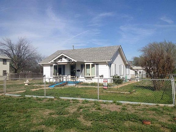 Great starter home with dry, clean, and spacious storm cellar inside the fenced in yard. Well-kept home with 2 big bedrooms, very nice full bath and a half bath with storage. Includes 2 big bay windows complete with pull-down window privacy covers. Nice big kitchen and a spacious living room. Antique door knobs, glazed finished trim, with plenty of storage throughout. Oversize 1 car detached garage with room to work and storage above. Matching stove, dishwasher, and microwave with vent hood. Awesome window coverings, vinyl siding and a young roof. AHS Warranty included. Home has been in the family for 25+ yrs. Lots of charm!! Good bang for your buck!