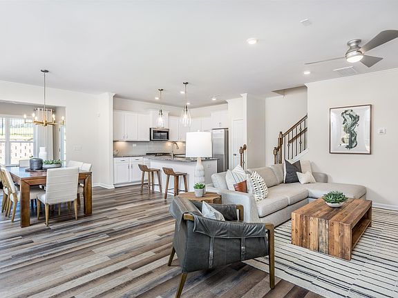 End unit townhome conveniently located with easy access to RTP, downtown Durham, and The Streets at Southpoint. First floor provides an open concept with a spacious kitchen featuring white cabinets and granite countertop. Light filled sunroom completes the first floor. Second-floor features 3 bedrooms including the spacious owner's suite with large walk-in closet and owner’s bath with tiled walk-in shower. Additional home features include hardwood stairs & open metal balusters. Home is currently under construction with for a July 2023 estimated completion.