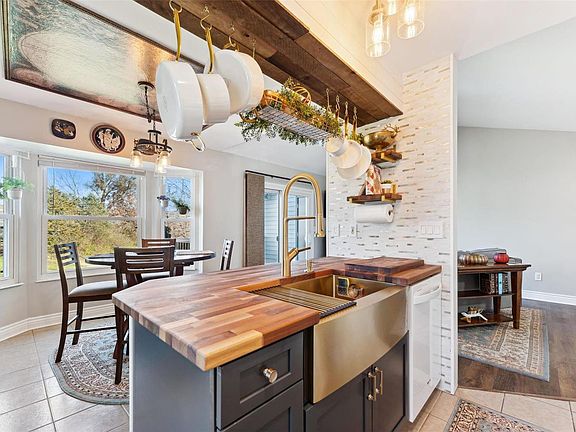 Step into elegance and sophistication with this upper-level condo boasting a stunning vaulted ceiling and a skylight that bathes the space in natural light. The updated kitchen is a chef's dream, featuring 42-inch white cabinets with custom butcher block counter tops and a breakfast bar showcasing a luxurious gold farmer's sink. The great room is adorned with luxury plank vinyl and an inviting electric fireplace, creating a cozy ambiance. Enjoy the tranquility of the private yard and tree-lined views from the deck, offering the perfect retreat at day's end. This condo harmonizes modern updates with a serene setting, providing a lifestyle of luxury and comfort. Location: Upper Level