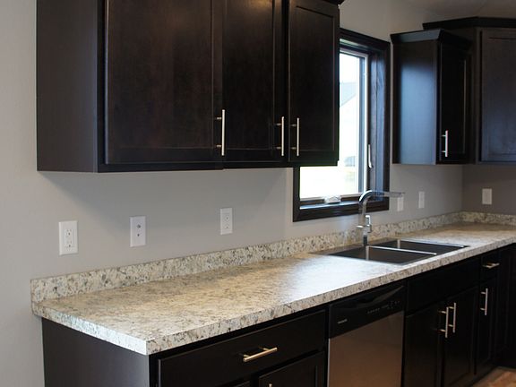 This spacious split-foyer home is being quality built by local builder, Future Builders. With 1,530 square feet above ground, 1,440 below and a .38 acre VIEW lot, there is definitely room for you to spread out! It has the location you’ve always wanted, in SE Minot’s Bluffs Addition surrounding the new Minot Country Club! Modern espresso cabinetry and trim, granite countertops, 2 paneled doors, brushed nickel fixtures, high ceilings and recessed lighting are just a few of the perks this home has to offer. The kitchen features an open layout with KraftMaid espresso stained shaker style cabinets, large island, glass backsplash, 3cm thick granite tops, modern apron sink, and stainless steel appliances. The dining room has a patio door to your 12’x12’ deck and is open to the large living room. Three bedrooms are on the main, including the spacious master with walk-in closet and private master bath with extra deep tub and a tile surround! The walk-out basement is finished with an enormous family room, two additional bedrooms, 3rd full bathroom and large laundry/utility room. The triple garage is insulted and sheetrocked with floor drains and 2 service doors. The exterior will feature grey siding, black stone, and carriage style garage doors. Don’t miss the large backyard with endless views! All photos are of a previous home and not all selections/finishes will be the same. Completion scheduled for end of May, early June.