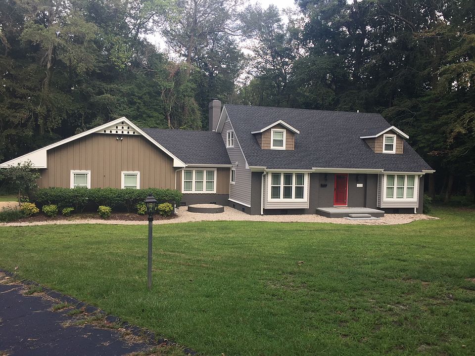 -Fully Renovated and redesigned home with high energy efficiency. Hickory butcher block island counter top w/prep sink. Granite counter tops, easy close cabinets & SS appliances. WINK touch screen for smart gadgets. Dual Masters. New roof, gutters, windows, hardwoods, LED lights, dual zone AC, carpet & more. Private 1.90 acre lot on cul-de-sac. Near Shopping and base. $3,000 in Seller paid closing cost !