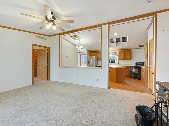 • Ceiling Fan(s), Kitchen/Dining Combo, Laminate Counters, Main Level Primary, Pantry, Vaulted Ceiling(s), Walk-In Closet(s), Walk-In Shower, Window Treatments, Programmable Thermostat