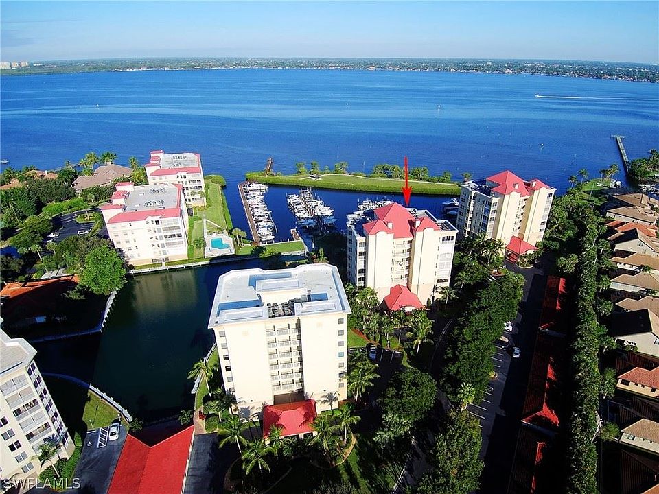 Sitting High Above The Caloosahatchee River - A MILLION DOLLAR View! Panoramic backdrop of the river is easily visible from the lanai, all living areas and the master suite. Enjoy watching boats of all sizes floating on the river knowing that when you board your vessel you are only a short 3.5 miles to the Gulf. The residence spans over 3000+ sq.ft. and truly lives like a single-family home with 3 bedrooms (all ensuites & all with access to a screened lanai), spacious study and great room, formal dining, gourmet kitchen and breakfast area. Detailed appointments are evident throughout; volume ceiling with tray insets, crown molding, tile and wood flooring, custom window coverings/ fans and lighting, granite counters, wood cabinetry and stainless appliances. Entrance to the condo residence is via a secured elevator that opens to your private foyer. A 50 ft. boat dock - one of the best in the marina, detached 1 car garage, assigned under building parking space and storage room will all convey with the sale of the condo. Amenities include, an 81-slip marina, community pool and spa, tennis and more. Please come and Enjoy- You will not be disappointed. Visit the video tour.