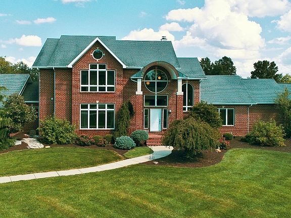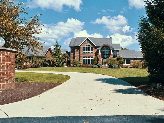 Fantastic estate, 5.85 Acres of Park-like setting setting back a lovely tree lined drive. Enjoy the privacy of your own 3/4 Acre swimmable stocked pond with dock and great campfire area. Great to have the home on CITY SEWER! Enter home through 2 story 9 x 10 exquisite foyer. Beautiful brick home with 1st floor master and great walk-out lower level. This home has so many awesome upgrades that will absolutely "WOW" you. Great kitchen, all Granite counter tops, 5' x 9.5 foot granite island, with breakfast bar. Thermador 6 burner range and grill, pot filler, built in ovens, Sub Zero refrigerator, wet bar, disposals in both sides of sink and bar, exciting tech lighting, nook surrounded with windows and attached to screened gazebo, all Trex decking. Fun guest ½ bath with pedestal sink, stool and urinal. Serving your guests in the huge formal DR will be a pleasure. Large mud room and walk in pantry with soaking tub, 6 car garage, 1st floor master with en suite bath and large walk-in closet. 4 bedrooms, 2 on 1st floor, 2 up with Jack and Jill bath. Newly finished walk-out LL plumbed for wet bar and media center, and newly finished Full bath bath. Approx 800 sq foot workshop with outside entrance. Panic room or storm cellar with reinforced concrete keeps you safe. 3 HVAC systems installed in 2017, great zoned heating and cooling. 2 Rheem Tankless hot water heaters installed in 2017. Home has data wiring and cable wiring that meets today's standards. Lots of Architectural appointments is this home, from ceilings to unique ceiling fans.