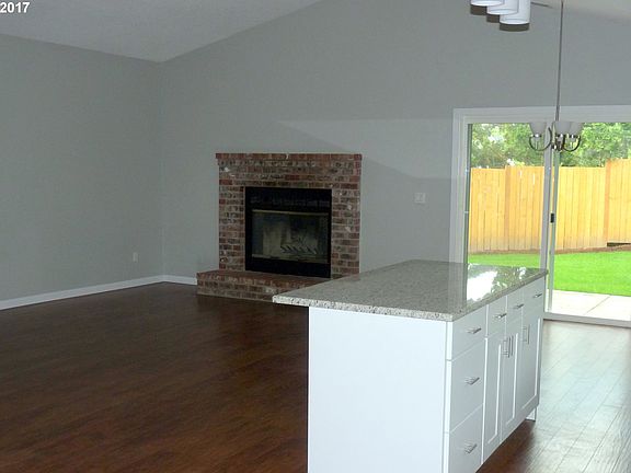 Beautiful and bright. 3 bedroom home on spacious lot w/ plenty of room for playing, grilling, and gardening. Open concept main level with vaulted ceilings, oversized windows, hardwood floors, brick encased wood burning fireplace. SS appliances, center island w/ bar, granite counters & tiled backsplashes in kitchen. Sliders to patio. Laundry hook-up ready. Master w/ 2 double closets plus 2 bedrooms w/ closets.