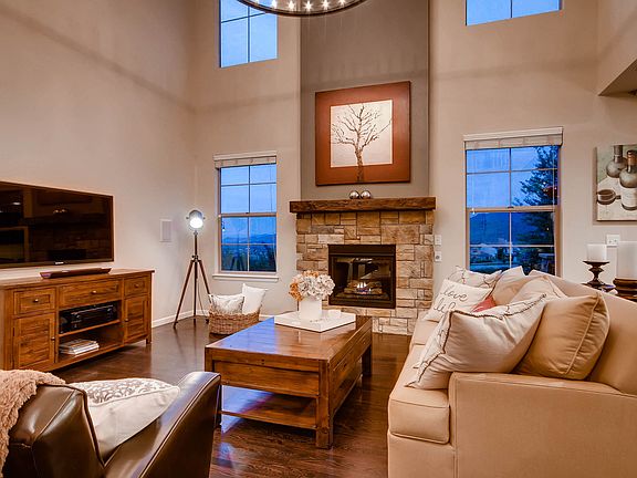 Stunning "right-size" home with jaw-dropping views - this is the Solterra home you have been waiting for. This home oozes pride of ownership; no detail has been overlooked. Ideal cul-de-sac location. Gorgeous dark oak hardwood floors throughout both floors, even the bedrooms! Open floor plan with a main floor study, Great Room w/ vaulted ceilings and a stone fireplace and reclaimed hand-hewn mantle. Dramatic lighting including a massive chandelier in the Great Room, and many chandeliers throughout. Large kitchen and island with dark cabinets and white quartz counters. 3 bedrooms on the 2nd floor including a spacious master suite and walk-in closet. 2nd-floor laundry. The finished basement is high-quality, with a TV room and fireplace, large bedroom and walk-in closet, European style bath and shower, and a real-deal Sauna with LED lighting and stereo speaker! Well manicured and established landscape, with tall Aspen trees, large paver patio, pergola with patio lights, seat walls, and a firepit. Dine al fresca and roast marshmallows over an open flame! Large flat backyard with forever Mtn. views down the Hogback. Nice wide finished 2-car garage with a workspace area and epoxy coated floor. Solterra is Denver’s destination for luxury living, and this turn-key home will be your retreat. Solterra features walking and biking trails, and the Retreat, a community gathering clubhouse with an Infinity pool and many social opportunities throughout the year. Come out West and start living the Solterra life today. Contact listing agent Ryan Penn at (720) 206-4268 for private tours before this home hits the market.