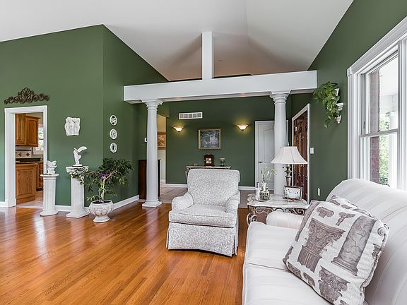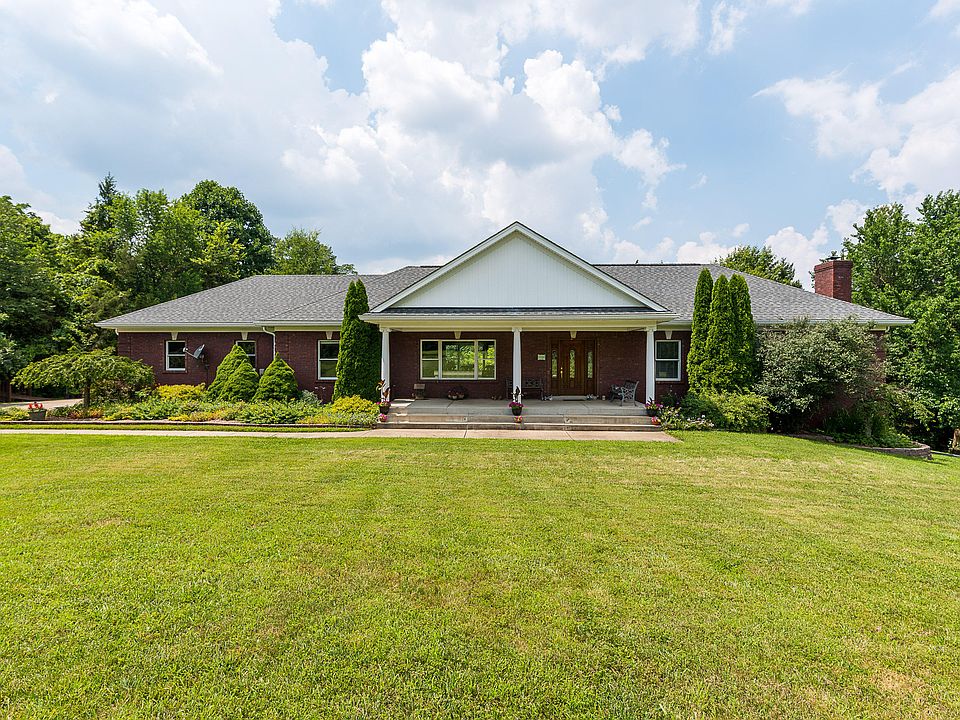 The ultimate in privacy on this 5 acres wooded lot. This walkout Ranch has an open floor plan and features 4 Bedrooms and 3 full Bathrooms. Besides the attached 2-car Garage, this property features a second detached, over-sized Garage with a large, insulated workshop on the 2nd floor, perfect for anyone who enjoys woodworking, auto repair, or wants a private office separate from the house. This 5 acre tract is very private, with a variety of wildlife and mature tress, but only 2+ acres needs mowing. Large master suite, with plenty of closets, large eat-in Kitchen with breakfast room, living room, dining room, Florida room, library/office, bedroom, bathroom, & laundry on main floor, and covered front & rear porches. Walkout lower level has Great room, 2 more bedrooms and bathro