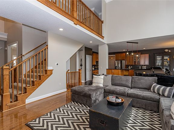 This stunning 1.5-story walkout boasts over 4000 sqft of luxurious living space and is perfectly situated in a prime location. The main level features a convenient primary suite. Upstairs, you'll find 3 generously-sized bedrooms, 2 of which share a Jack 'n Jill bath, while the 3rd enjoys its own ensuite bath. A bonus loft space adds versatility to this upper level.The heart of the home is the captivating 2-story great room, complete w/a full stone gas fireplace & floor-to-ceiling windows that flood the space with natural light. A flexible front flex room, ideal for an office, formal dining, or sitting room, is situated just off the entryway.The kitchen is a chef's delight, an abundance of cabinets, & granite countertops. It's perfect for hosting gatherings & opens seamlessly to the large open-concept living area. From here, step out onto the spacious deck w/steps leading down to the professionally landscaped, irrigated yard, sprawled across 0.31 acres, w/mature trees. An outdoor oasis awaits, complete w/a firepit area & basketball hoop. Additional practical features include a mudroom & a laundry room w/a sink tucked conveniently behind the kitchen.The walkout lower level is a home of its own, featuring a wet bar area, space for a game table, a cozy family room w/another fireplace, a 5 bedroom, & a full bath. Updates ensure peace of mind and include a new roof, gutters, & downspouts in 2021, 2 new furnaces, 2 AC units in 2020. All info obtained from Seller & public records.