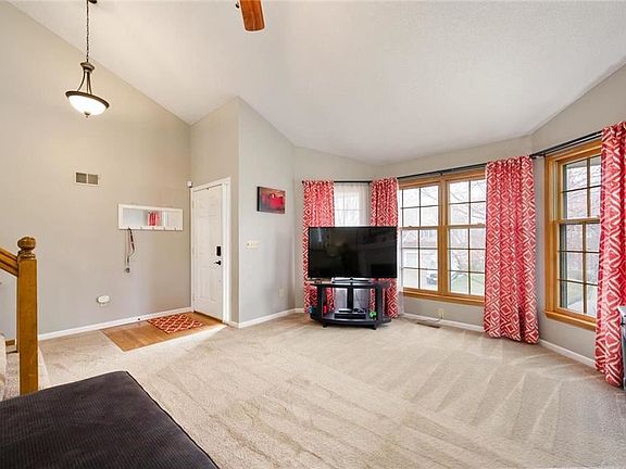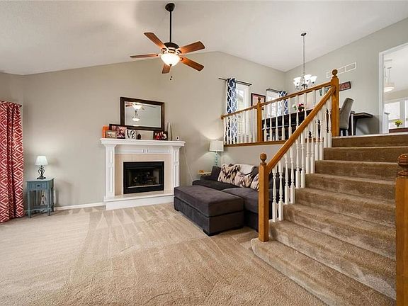 Olathe East school district, centrally located w/ easy highway access & tons of great shopping! This dynamite, updated, vaulted & open floor plan is an amazing space to entertain and spend time with family. Check out the updated kitchen w/stainless appliances, newer cabinets, great wall of windows, pantry & tile floors along with adjoining new, gorgeous, dark wood flooring as well! Walk out finished lower level boasts Large fam room, 2nd fireplace, spacious 4th bedroom & full bath. This one will go Quick!
