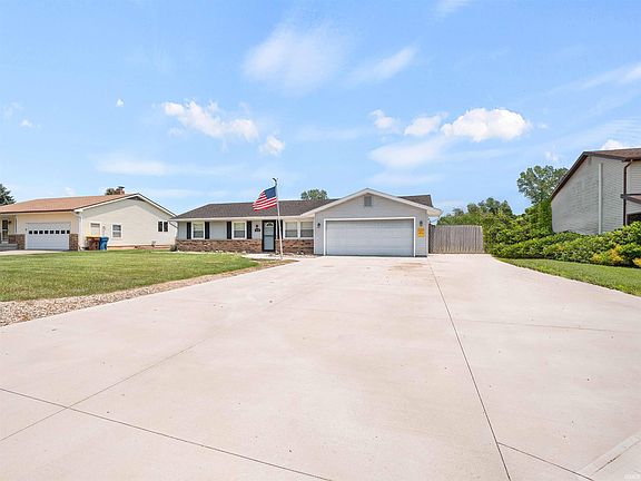 Huntertown 3 bedroom, Den, 2 full bath ranch with a generously sized great room including stone fireplace, newer window shutters & new sliding door 2019. Open kitchen with SS appliances, tiled backsplash and big farm sink. Enjoy the huge backyard with privacy fence and shed. Out front is a new concrete driveway, wide enough to accommodate 3 vehicles. Primary bedroom ensuite, updated bathroom. Hard surface flooring throughout for easy care. All windows have been replaced in recent years. All appliances remain, including washer and dryer. Garage has several cabinets and a built-in work bench. New owner can enjoy a pleasant neighborhood, no HOA, so park your RV, Boat or extra vehicles. Property needs some TLC, primarily minor cosmetic items and landscaping; selling "as is." Square footage, schools, and general information is not warranted; buyer and their agent are responsible to verify. 24 Hours needed for response as seller is out of state.