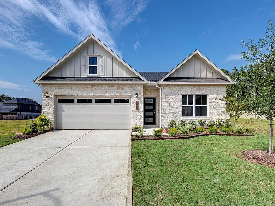 Experience "The Crawford" by Smith Douglas Homes in Audubon—a beautifully crafted 1-story, 3-bedroom, 2-bath home designed for comfort and style. The open-concept layout features a mudroom, a spacious kitchen with 42” upper cabinets, granite countertops, and a large island with pendant lighting. Elegant finishes include vinyl plank flooring throughout the main living areas and primary suite and upgraded tile in baths and utility. The primary bath boasts a separate garden tub and shower. Enjoy outdoor living with a covered rear patio, a fully sodded yard, full irrigation, and full gutters. Energy-efficient with Tech Shield radiant barrier—AVAILABLE NOW!
