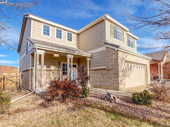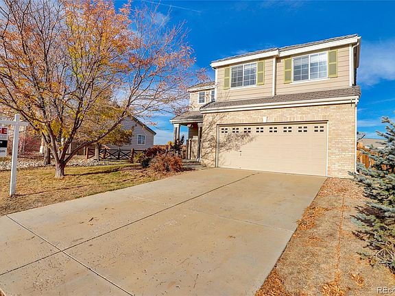 Welcome home to this beautiful home located in the Buffalo Run community. Upon entry you will notice an open floor plan with laminate wood floors, high vaulted ceilings and large picture windows. The spacious living room flows into the eat-in kitchen, perfect for entertaining. The kitchen boasts a large walk-in pantry and stainless steel appliances. Head upstairs to find the spacious primary suite with attached full bath. Two more bedrooms and a full bath complete the upper level. Head outside to the private, fenced-in backyard and relax on the patio complete with a brick firepit. Parking is a breeze with a two car attached garage, and the furnace and central air are less than a year old! Walking distance to Stampede Park and conveniently located by I-76 and E470. See it today!