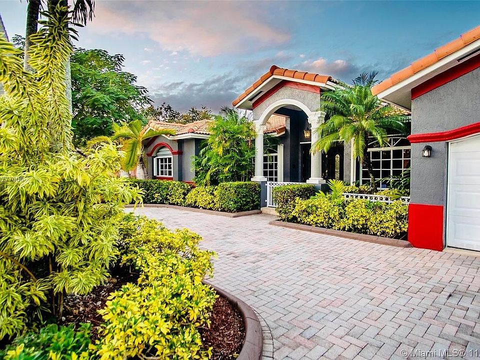 Search no more, you have found "The One"! Drive up your circular driveway to the perfect corner lot estate and find no shortage of parking with an additional 2 car garage to boot. Experience the curb appeal and let the perfection sink in. Open the double doors and walk into gleaming marble flooring throughout a perfectly distributed split floor plan. Cook and bake to your hearts delight in a very spacious and upgraded eat in kitchen. Look out the window and see the backyard of your dreams; boasting a covered terrace, sparkling swimming pool, lush landscaping, room for a boat and plenty of grass to run and play. A true entertainers delight that even hosts a junior suite for guests or the in-laws. Conveniently located near A+ schools, Fl. Turnpike, dining and shopping.