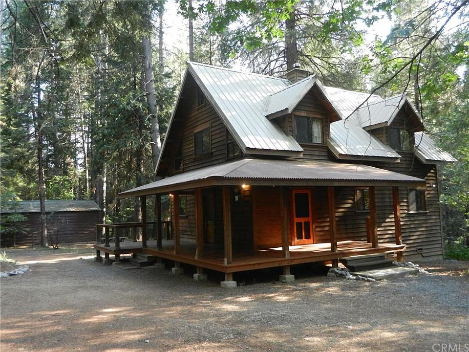 #683 Owner/Contractor built with Pride & Love!! Home has 2x6 construction, excellent water from high volume well. 1/2" Insulboard under sheetrock on all walls and ceilings for added energy efficiency, comfort and quiet. Cedar lap siding and trim, metal roof, dual pane windows, custom granite river rock hearth with hand selected rocks from nearby Feather River, high quality cedar covered deck built from trees milled on property, black oak and incense cedar trim throughout interior, tiled window sills, solid fir doors throughout, high end solid maple custom finished cabinets with dovetailed drawers & rollouts with full extension Blum slides, tile countertops, new water heater, custom solid knotty pine cabinetry in master bedroom, custom maple cabinets in bathroom, older growth trees, seasonal creek (used to run year round) & garden area. Oversized garage w/separate 100 amp electrical, interior has outlets & switches throughout, exterior lighting, laundry w/utility sink & full bathroom, upstairs loft, fully framed downstairs room, insulated garage door, dual pane windows, metal roof & cedar lap siding matching home. A Metal 2 Car Carport, plus a Quonset Style Workshop that was once the local school house & recently used for custom cabinet/woodworking shop!